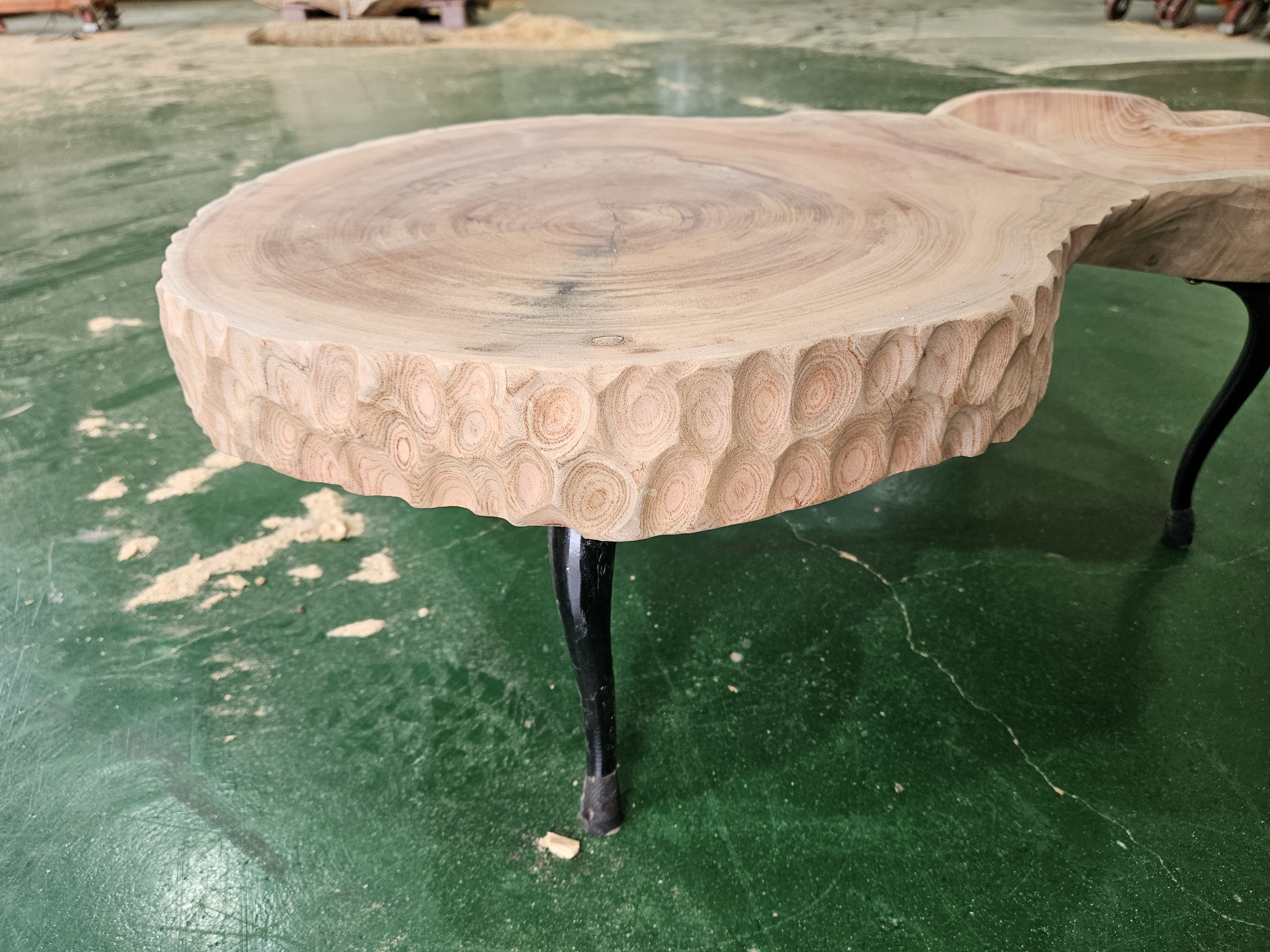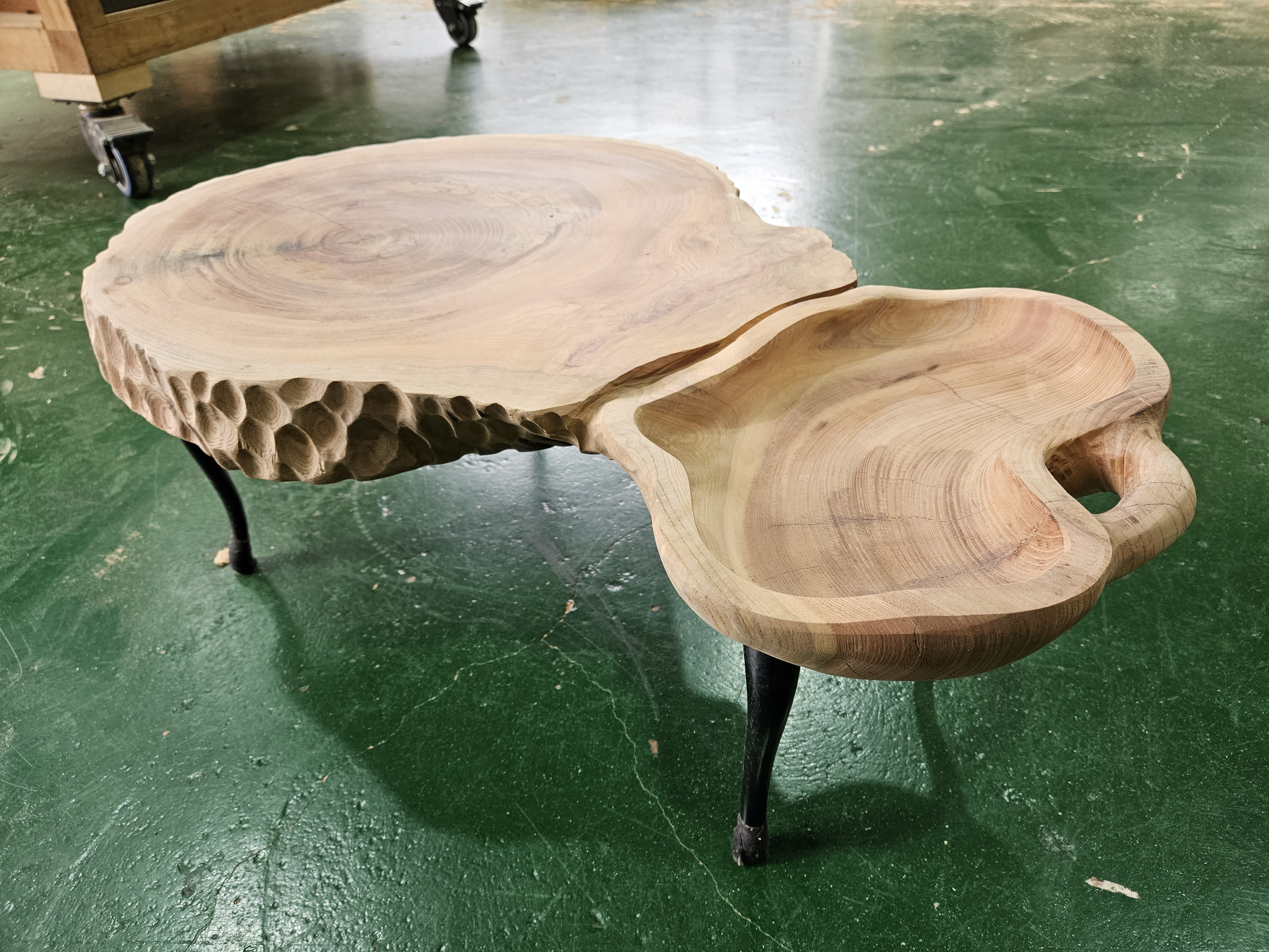 차탁에 포인트를 주기 위해 한쪽은 담을 수 있게 속을 파내놓고,